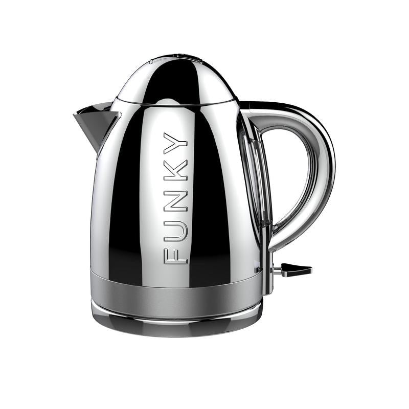 Start your day in style with the fabulous new Funky Kettle. Featuring a stainless-steel housing and lid, this superb kettle handles the basics with ease. The large 1.7L capacity boils up to 7 cups at once with the 3kW element providing a fast and quiet boil. The water level window behind the handle lights up in blue whilst the water is boiling. Accurate filling is easy thanks to the rear water level window, while the 360 swivel base is perfect for left-and-right hand use. An easily removable, washable fine mesh filter helps keeps lime scale at bay and cord storage in the base helps keep your surfaces tidy.