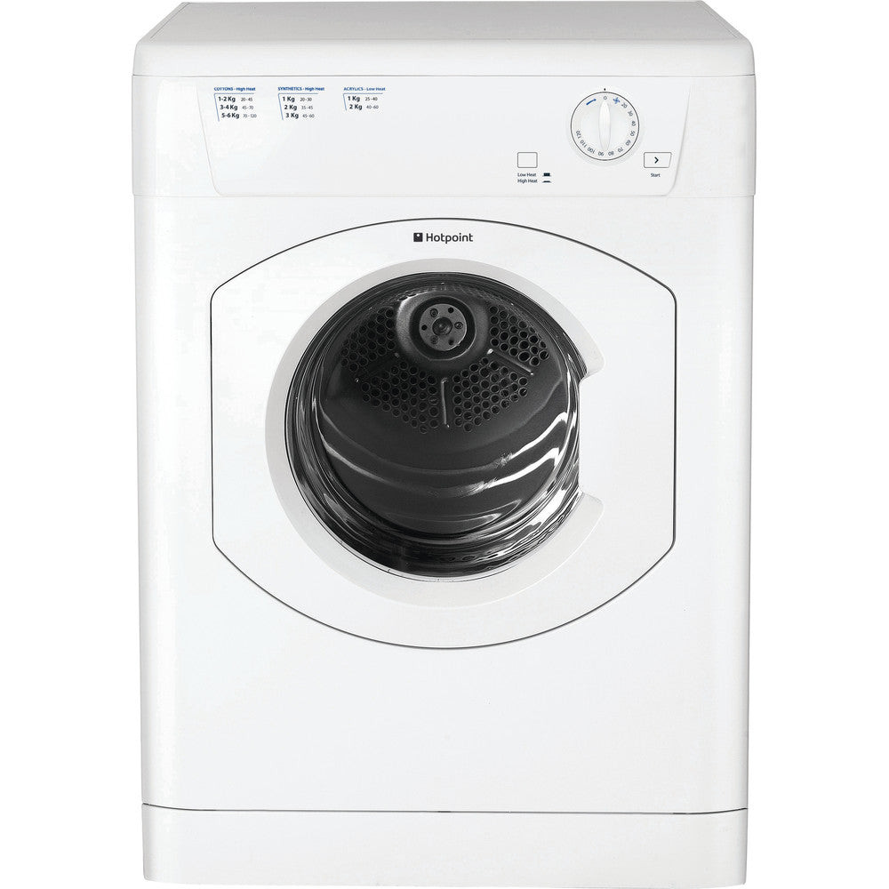 The Hotpoint FETV 60C P (UK) Freestanding Vented Tumble Dryer comes in a classic crisp white finish to complement any household setting and features a 7kg drum capacity. This appliance includes Anti-Tangling technology, a reverse tumble action that helps to ensure your clothes dry evenly and without tangling together to keep clothes looking better for longer, as well as high and low heat options to help further protect delicates.