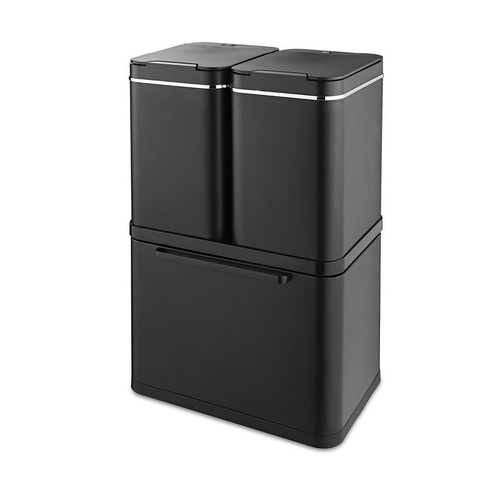 Hygienically dispose and separate your household waste and recyclables with the Tower Freedom sensor recycling system. Designed for space conscious families, this bin system can be stacked for compact waste disposal, or operated individually. This recycling system consists of a large 50 litre bottom bin capacity, as well as 2x 25 litre top bin capacities to easily separate your household waste from your recyclables. Featuring hands free opening for two of the bins using motion sensor technology, you can dispose of household waste and recyclables hygienically with one swift hand motion above the lids for automatic opening, and a soft-close function to minimise noise disruption. Alternatively there is a manual override for opening and closing at the touch of a button. Constructed from robust stainless steel bodies for long lasting durability, with fingerprint-proof coatings for a sleek and smear free appearance.