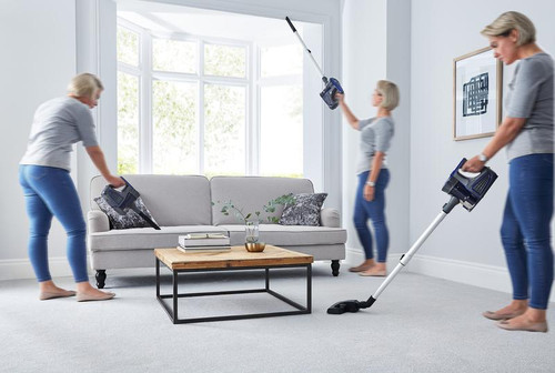 Clean up your carpets and hard floors in a flash with this powerful cordless vacuum cleaner. It features an innovative 3-in-1 design to help you get the most out of your cleaning, working as a telescopic upright stick cleaner to easily vacuum furniture and high surfaces. Simply detach from the telescopic tube to use as a handheld cleaner, perfect for vacuuming stairs, upholstery and car interiors. Crevice tool and brush head attachments are also included to tackle hard-to-reach areas and pick up trapped hairs with ease. An integrated HEPA filter targets dust and dirt, as well as captures bacteria and allergens for impeccably clean results and improved health around the home. A single charge of the rechargeable battery provides 40 minutes of uninterrupted cleaning without any wires getting in your way. The included wall-mounting kit conveniently stores the vacuum at an elevated height against the wall to take up minimal space when not in use.